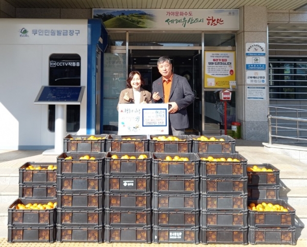 [금요저널] 함안군 군북면 소재 농업회사 ㈜아라리농산과 제주 애월읍 용흥리에 거주하는 강석종 씨는 지난 4일 군북면 경로당을 이용하는 어르신들을 위해 제주 감귤 5㎏ 200상자를 기탁했다.