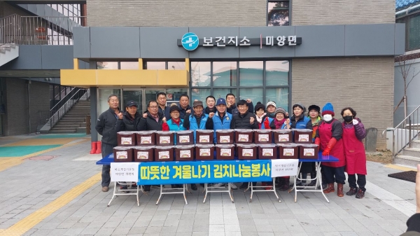 이규룡 미양면장은 “추운 날씨에도 기꺼이 김장 행사에 참여해주신 박온숙 위원장님 및 위원님들께 진심으로 감사드린다”며 “미양면 지역사회 복지 증진에 늘 관심과 노력을 기울이겠다고”고 말했다.