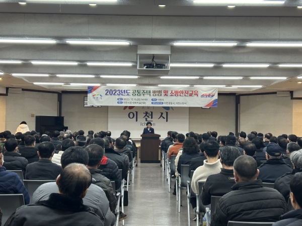 [금요저널] 이천시는 5일 시청1층 대회의실에서 관내 공동주택 경비원 및 소방안전관리자 180여명이 참석한 가운데 ‘2023년 공동주택 방범 및 소방안전교육’을 실시했다.