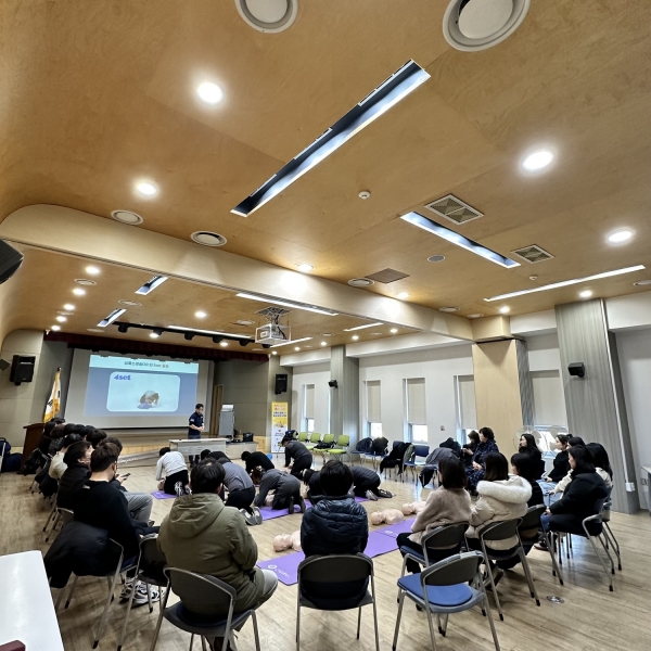 한국라이프세이빙소사이어티의 전문강사가 응급환자 최초 목격자 행동 요령과 이론부터 심폐소생술 방법, 자동심장충격기 사용방법 등까지 실제상황에 즉시 적용될 수 있도록 실습 위주로 교육했다.