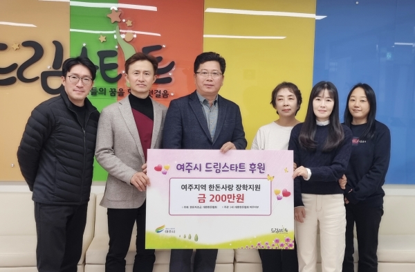 [금요저널] 여주시 드림스타트는 지난 5일 대한한돈협회 여주시지부로부터 드림스타트 대상 아동을 위한 후원금 200만원을 기탁받았다고 밝혔다.