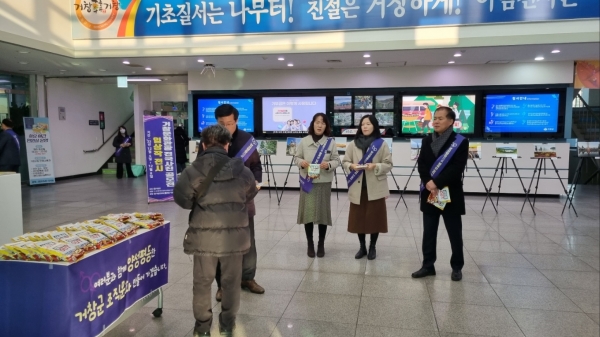 [금요저널] 거창군은 6일 군청 중앙 로비에서 전 직원을 대상으로 ‘양성평등 조직문화 조성 캠페인’을 펼쳤다.