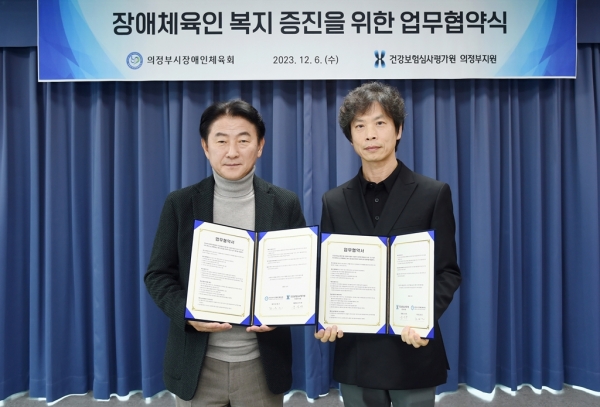[금요저널] 의정부시는 12월 6일 의정부시장애인체육회가 건강보험심사평가원 의정부지원과 장애인체육 활성화를 위한 업무협약을 맺었다고 밝혔다.