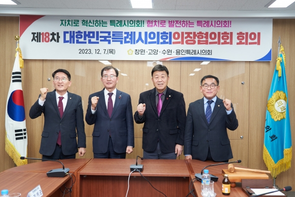 이날 회의에는 윤원균 의장을 비롯해 김영식 고양특례시의회 의장, 김이근 창원특례시의회 의장, 김기정 수원특례시의회 의장 등 관계자들이 참석했다.
