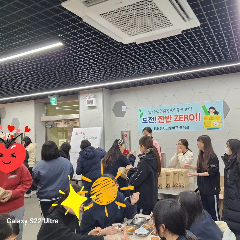 □ 영천여자고등학교(교장 신덕섭)는 12월 7일(목), 8일(금) 양일에 걸쳐 학생생활안전부 및 급식실 주관으로 12시 30분에서 13시 20분까지 학생들이 지구환경 살리기 운동에 동참할 수 있도록 ‘지구별에서 함께 살기’ 이벤트를 전교생을 대상으로 진행하였다.