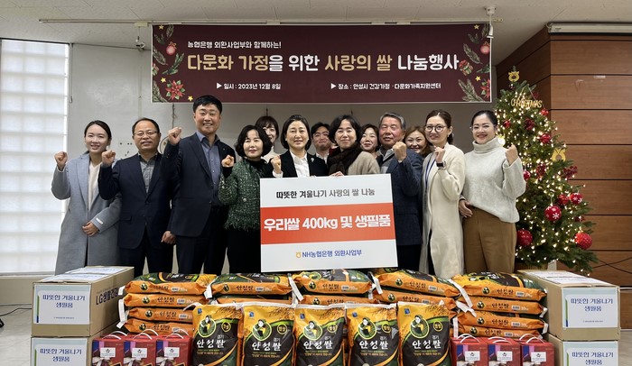 NH농협은행 외환사업부가 최근 안성에 소재한 다문화센터를 방문해 성탄 선물로 쌀과 생필품 등을 전달했다고 10일 밝혔다.