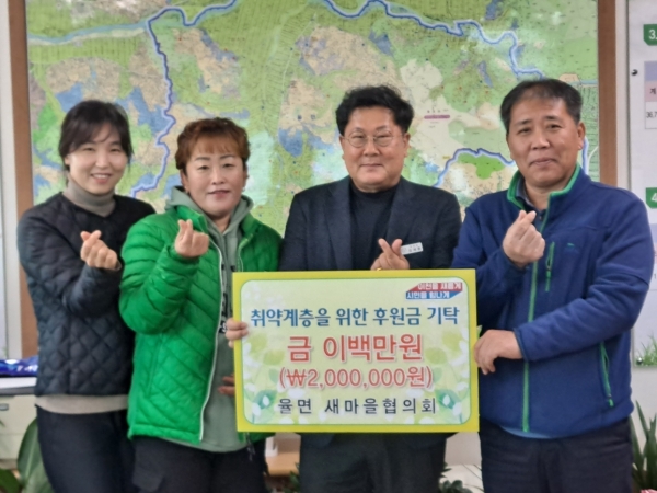 율면 남·녀 새마을협의회에서는 매년 연말 어려운 이웃을 위해 사용해 달라며 정기적으로 2백만원을 기탁해오며 나눔문화 확산에 앞장서고 있다.