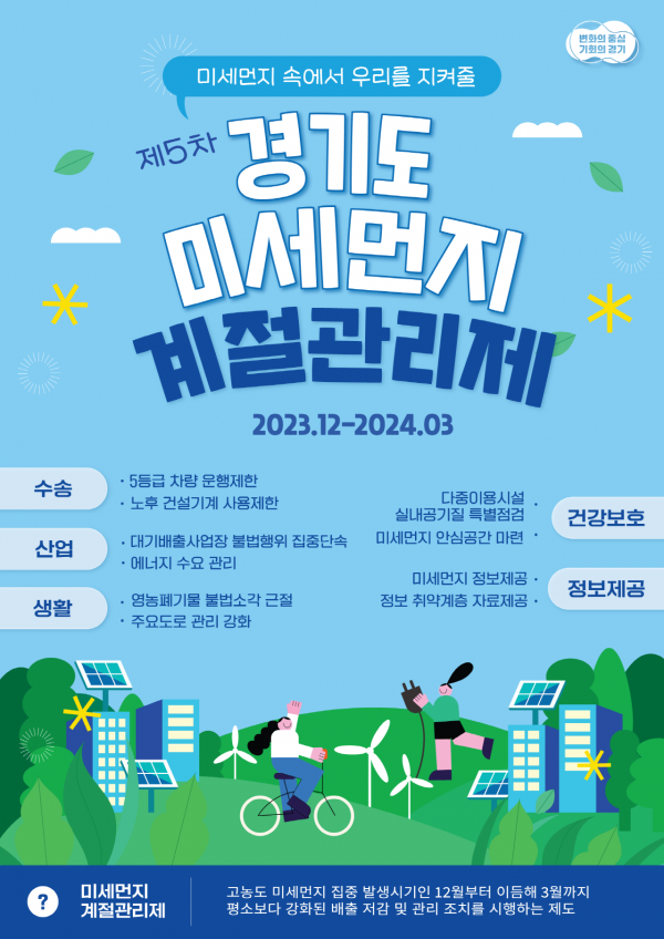 제4차 계절관리제기간의 초미세먼지 농도가 34㎍/㎥로 3차 계절관리제 기간의 농도 32㎍/㎥에 비해 2㎍/㎥ 증가된 것으로 나타나, 시는 제5차 계절관리제 기간내 초미세먼지 농도를 저감 시킬 수 있도록 총력을 기울이고 있다.
