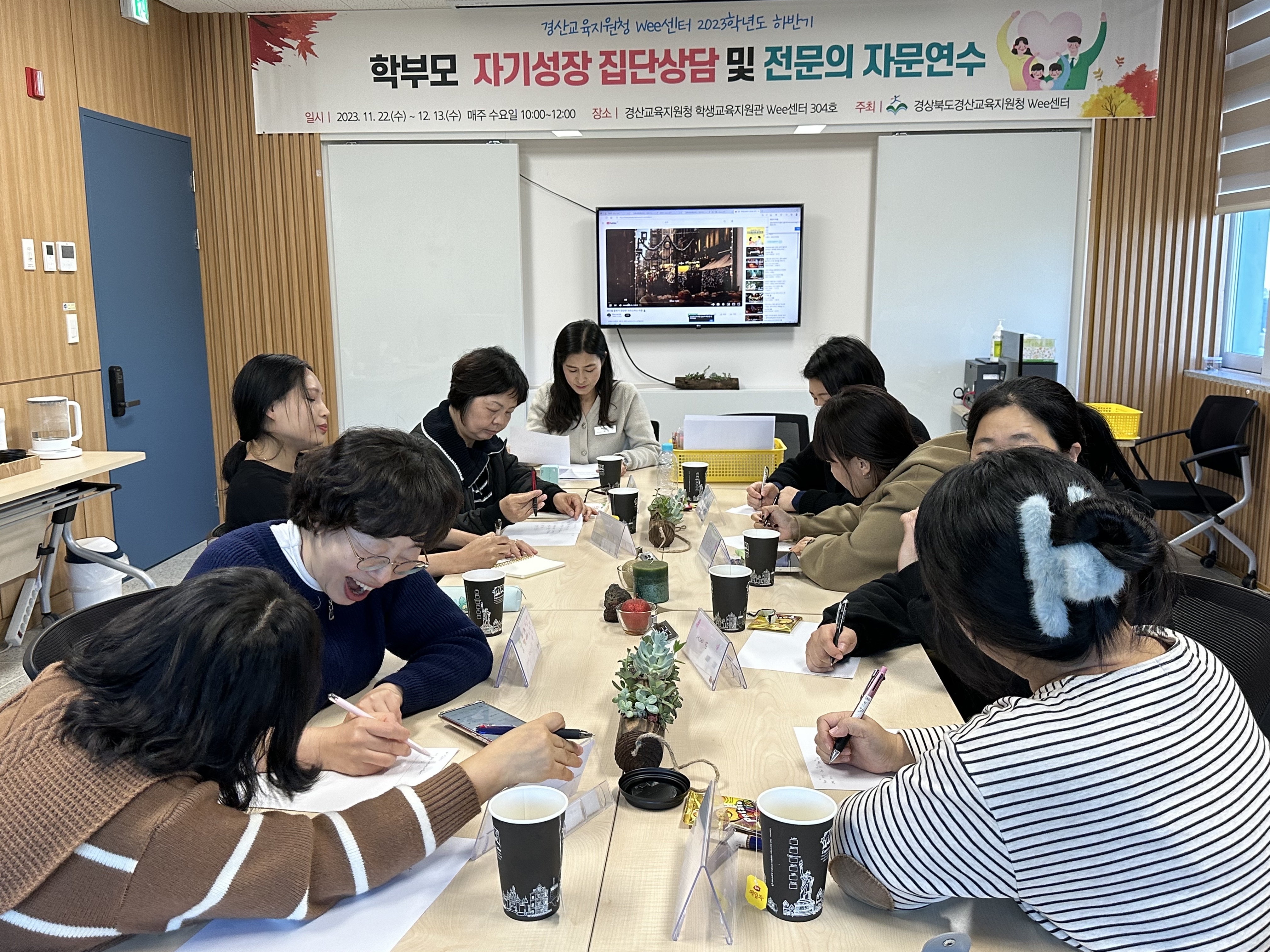 □ 경산교육지원청(교육장 이양균)Wee센터는 2023년 11월 22일(수)부터 12월 13일(수)까지 매주 수요일 총 4회기에 걸쳐 학부모 자기성장 집단상담 프로그램을 실시한다.