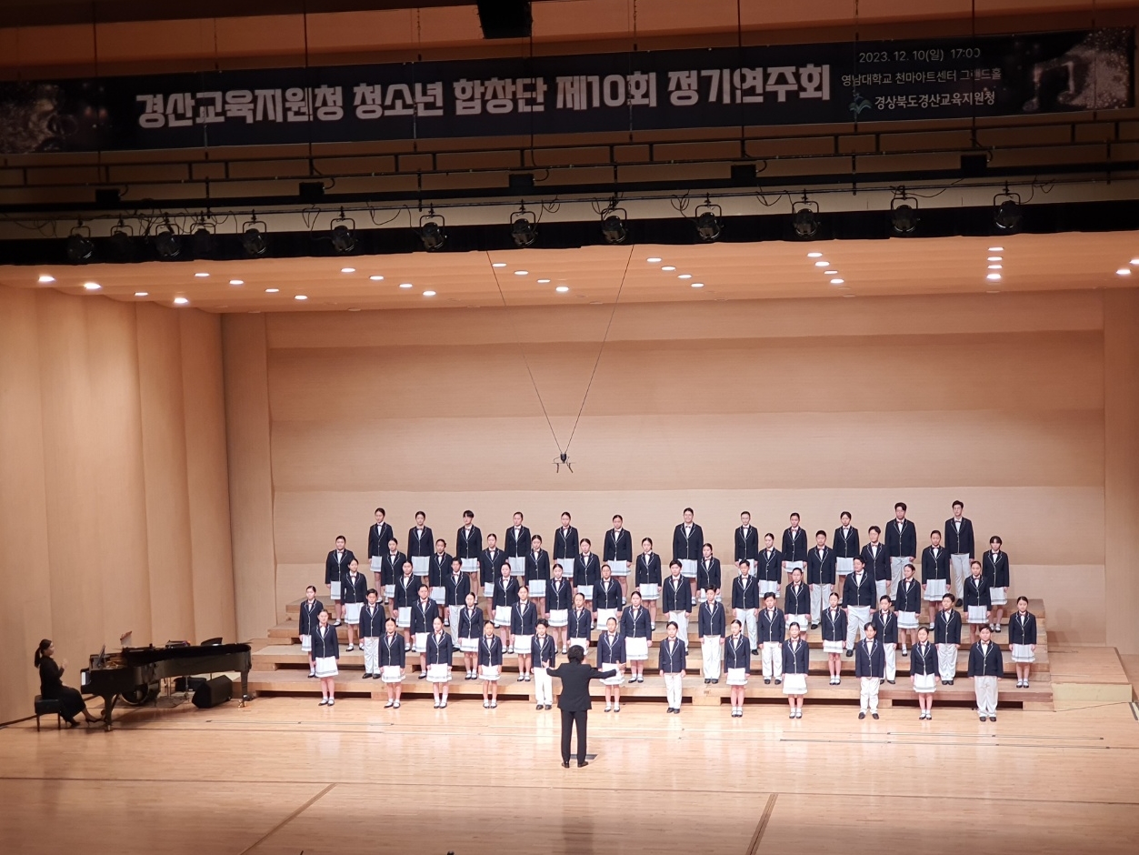 □ 경산교육지원청 청소년합창단은 음악을 통해 청소년들의 새로운 미래와 큰 꿈을 그리는 것을 목적으로 2013년에 창단되어 올해로 10주년을 맞이하였다. 지난 10년 동안 크고 작은 공연을 통해 62명의 단원이 서로 협력하고 배려하면서 음악을 통해 인성과 예술 감성을 함께 가꾸어 가는 시간을 가졌다.