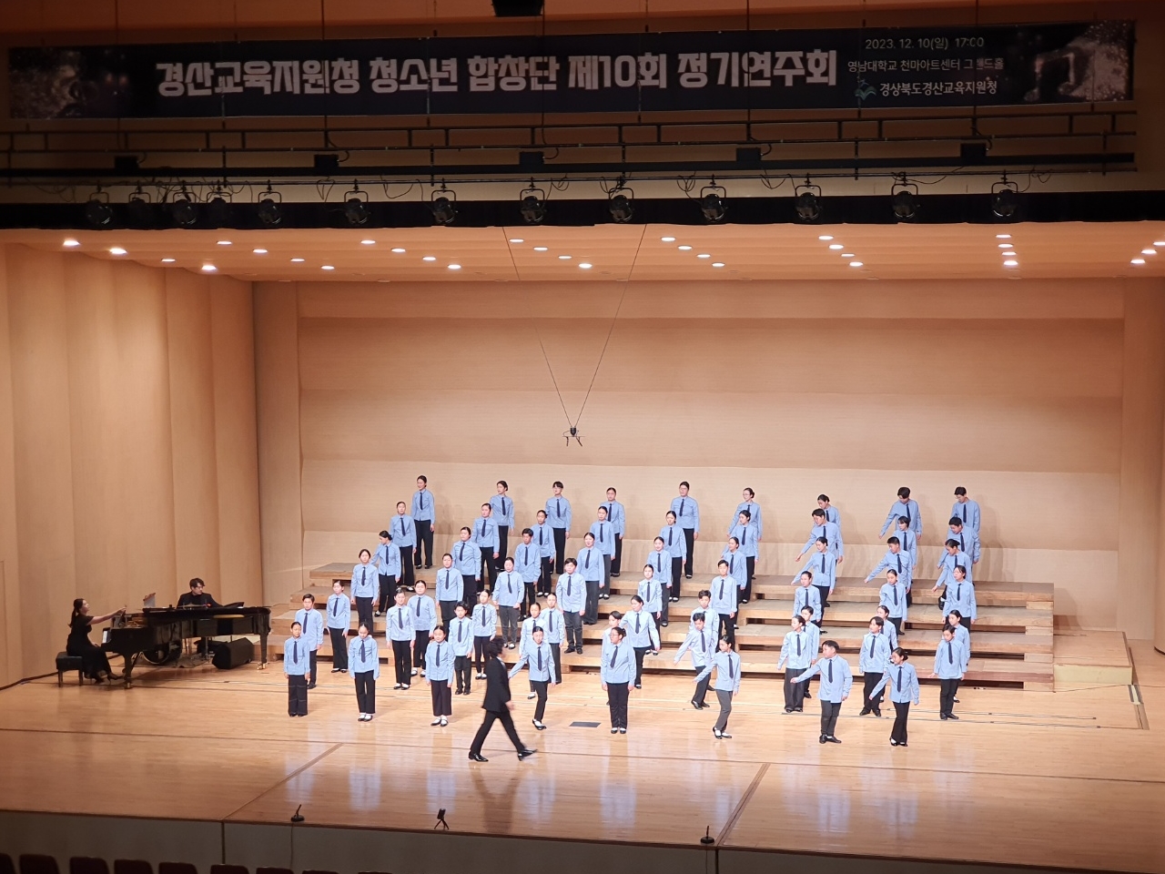 □ 경산교육지원청(교육장 이양균) 청소년합창단은 12월 10일(일) 천마아트센터 그랜드홀에서 창단 10주년 기념 정기연주회를 성황리에 개최했다. 「같이의 하모니 10년, 노래로 그리는 꿈!」을 주제로 마련한 경산교육가족 행복나눔 콘서트는 학생과 교육가족, 지역민 900여명에게 큰 위로와 따뜻한 시간을 선사했다.