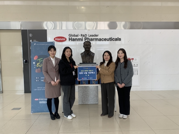 [금요저널] 평택시 팽성읍 추팔산업단지에 있는 ‘한미약품 평택공단 바이오플랜트’는 연말을 맞아 지난 8일 팽성읍 행정복지센터에 김장 김치 100통을 기부하며 활발한 나눔 활동을 전개했다.