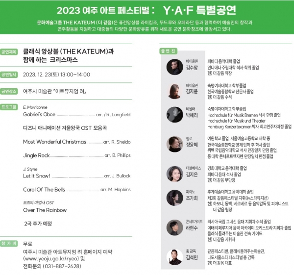 더불어, 12월 23일 오후 1시에는 ‘클래식 앙상블과 함께하는 크리스마스’ 특별 공연을 운영한다.