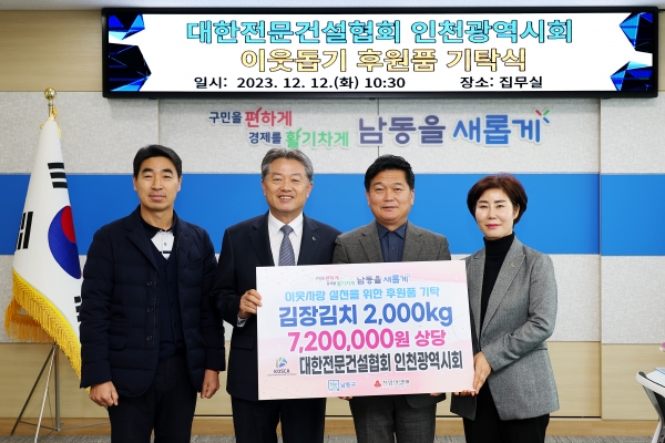 대한전문건설협회 인천광역시회, 남동구 취약계층에 김장김치 기탁