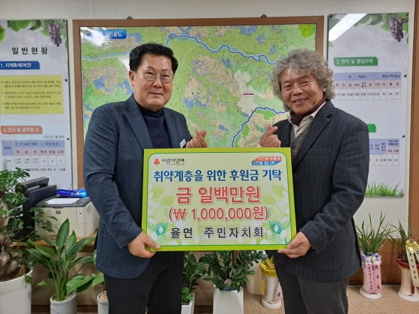 김영국 율면 주민자치회장은“모두가 어려운 시기이지만, 저소득 취약계층은 그 어느 때 보다도 힘든 시기를 보내고 있을 것으로 생각하며 모든 회원들의 마음을 모은 후원금이 어려운 이웃에게 도움이 되기를 바라고 앞으로도 함께 만들어 나가는 행복한 율면을 만들기 위한 나눔을 계속 이어 나갈 계획이다”고 전했다.