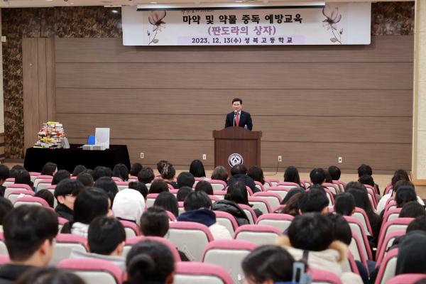 ‘판도라의 상자’를 주제로 성복고등학교 시청각실에서 열린 특강은 ‘마약중독 예방교육’과 특강에 나선 천영훈 원장의 사인회가 열렸다.