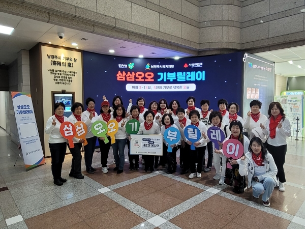‘삼삼오오 기부릴레이’는 남양주시청 각 부서 또는 관내 사회단체에서 ‘매월 3일과 13일에 5천 원을 기부해 행복한 오늘을 만들자’라는 취지의 캠페인으로 시청 85개 부서와 123개의 사회단체의 릴레이 기부로 진행되고 있다.