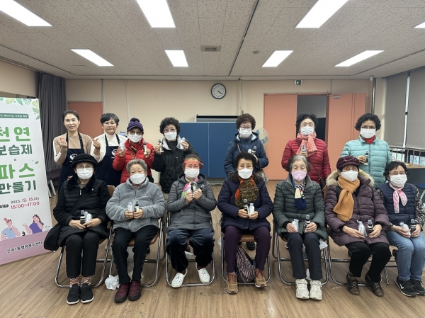 [금요저널] 의정부시 신곡1동행정복지센터는 12월 13일 다목적실에서 저소득층 및 독거노인 12가구를 대상으로 사계절 힐링 ‘천연보습제·파스 만들기’를 진행했다.