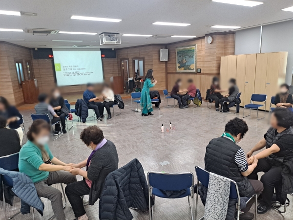 이번 자조모임은 전문강사 2명을 초청해 치매환자를 존중하며 돌보는 기술과 치매환자 가족과 보호자를 위한 스트레스 해소법 등 자기 돌봄에 관한 교육을 실시했다.