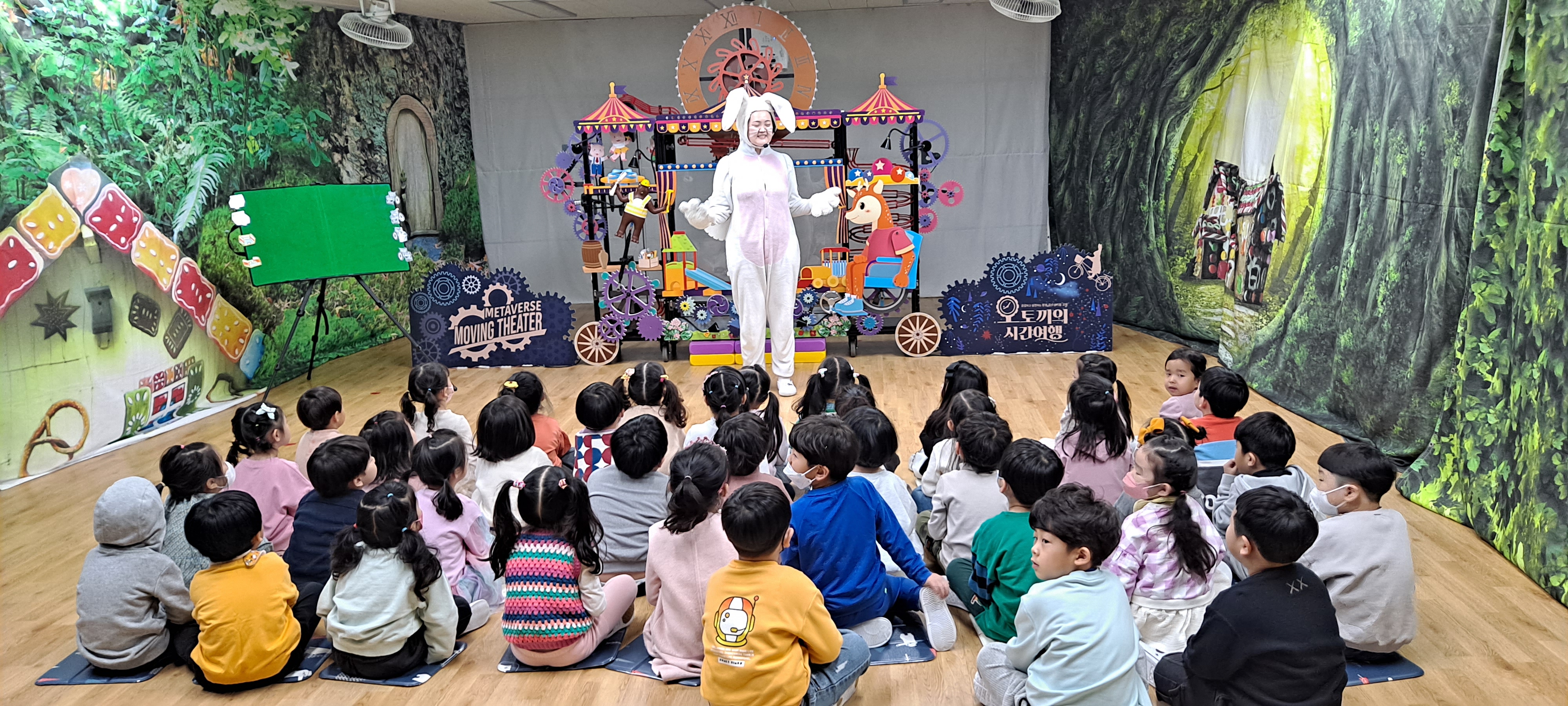▣ 12월 11일(월)은 전 연령을 대상으로 미디어 안전교육, 만 3·4세는 동물과 함께하는 증강현실 체험, 만 5세는 뚜루뚜루 코딩 로봇 놀이를 체험하셨다. 12월 12일(화)에는 주인공 오토끼가 휠체어를 이용하는 친구와 함께 놀이하기 위해 놀이터의 모습을 변화시켜 나가는 메타버스 무빙씨어터 ‘모두의 놀이터’공연을 관람하였다.