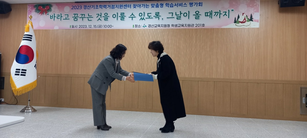 □ 경산교육지원청(교육장 이양균) 경산기초학력거점지원센터는 2023년 12월 15일(금) 경산교육지원청 학생교육지원관에서 경산, 청도지역의 담당장학사 및 학습코칭단 26명 등을 대상으로 평가회및 연수회를 개최하였다.