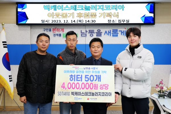 [금요저널] 인천시 남동구는 최근 ㈜빅케이스테크놀러지코리아로부터 지역 내 취약계층 겨울나기를 위한 히터 50대를 기탁받았다고 18일 밝혔다.