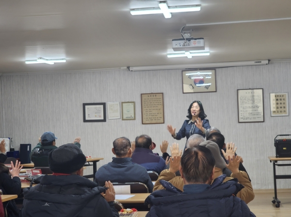 [금요저널] 대한노인회 남양주시지회 진건읍분회는 18일 분회 사무실에서진건읍 내 38개 경로당 회장·총무들을 대상으로 ‘찾아가는 휴먼북’을 통한 웃음치료를 실시했다.