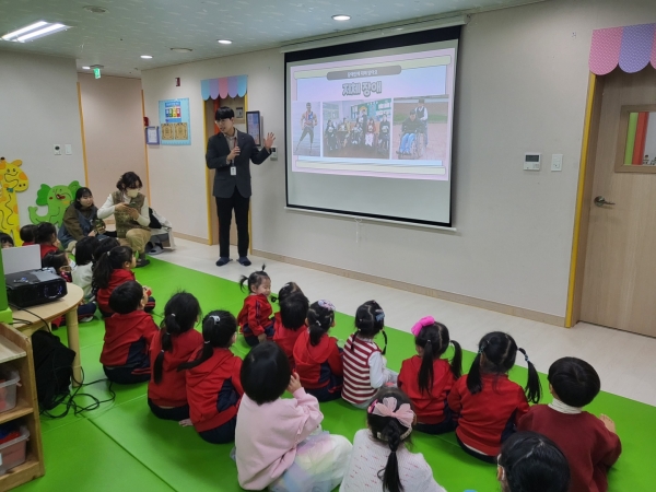 [금요저널] 동두천시장애인종합복지관은 지난 15일 꿈을 키우는 어린이집 원아 30여명을 대상으로 장애인식개선 교육을 진행했다고 밝혔다.