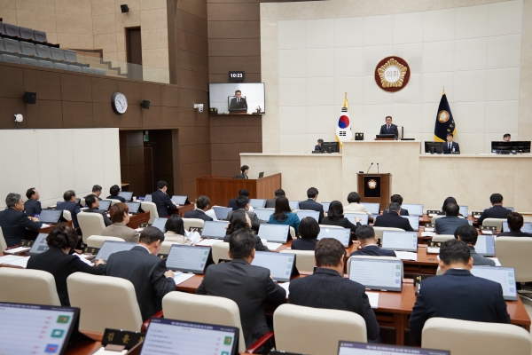 윤원균 의장은 개회사를 통해 “정례회 기간 동안 행정사무감사와 예산안 심의를 위해 열과 성을 다해주신 동료의원 여러분, 그리고 자료 준비와 답변에 성실히 임해주신 공직자 여러분, 모두 수고 많으셨다”며 “심의 과정에서 제기된 각종 정책과 예산, 현안사항에 대한 치열한 논의는 민의를 대변하는 의회의 당연한 책무이자 더 살기 좋은 도시를 만들기 위한 소통의 과정임을 잊지 않았으면 한다”고 말했다.