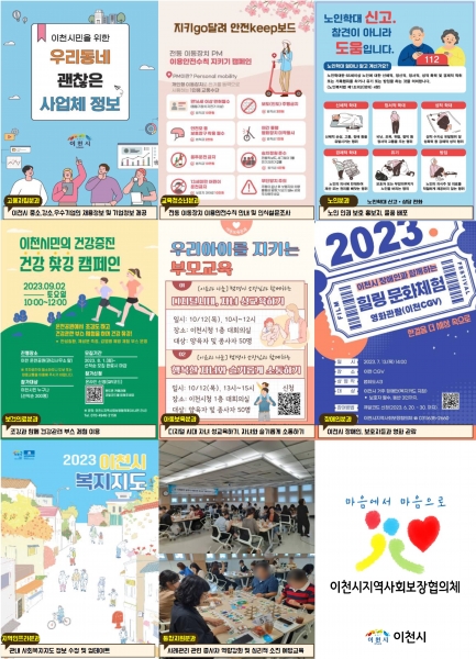 2023년에는 이천시 중소·강소기업의 채용정보 및 기업정보를 제공하는 ‘우리 동네 괜찮은 일자리 가이드북’ 제작, 전동 이동장치 이용 안전수칙 홍보 ‘지키go 달려 안전 keep보드’, 노인인권 보호 캠페인, 조깅을 통한 이천시민 건강찾깅 캠페인, 자녀와의 슬기로운 소통을 위한 ‘우리 아이를 지키는 부모교육’, 장애인과 보호자가 함께 하는 문화체험, 관내 사회복지시설 복지지도 리뉴얼, 사례관리 업무 종사자 심리적 소진 예방을 위한 사례관리 관련 종사자 교육 등 8개의 다양한 공모사업을 진행했다.