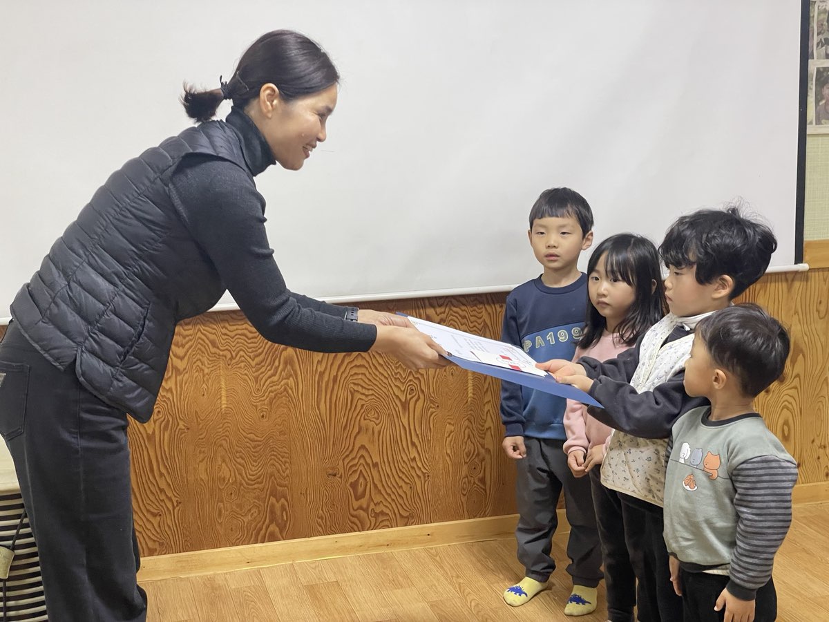▶그리고 우리 아이들에게 의미 있는 수상 시간을 가지고자 4명의 아이들이 우리들숲유치원 대표가 되어 시상식을 가져보았습니다.