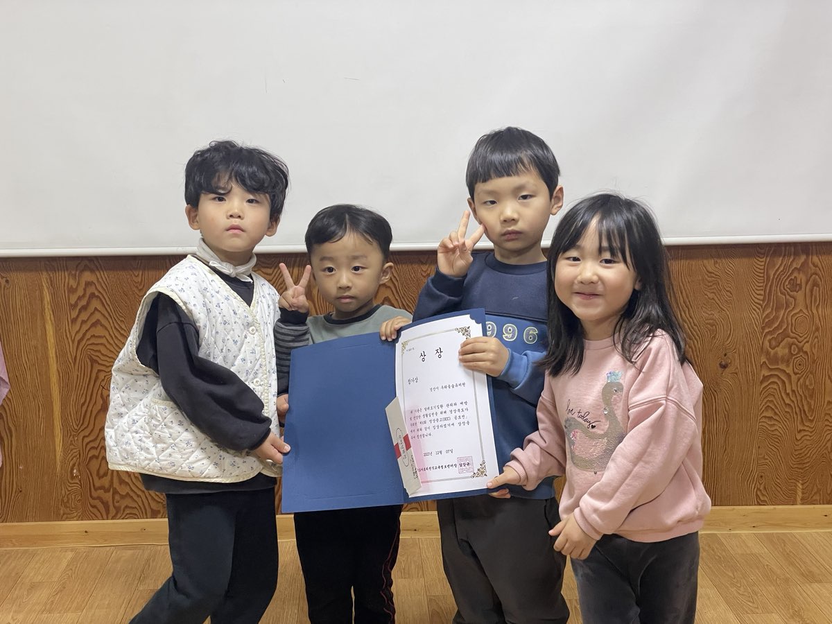 우리들숲유치원(원장 송옥화)과 우리들숲학교(대표 신소선)은 2023년 12월 15일(금), 아토피 예방 UCC 공모전 시상을 우리들숲유치원의 전체 유아 및 교직원이 함께 시상식을 실시하였다.