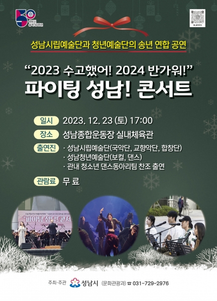 [금요저널] 성남시는 오는 12월 23일 오후 5시 성남종합운동장 실내체육관에서 시립예술단과 청년프로예술단의 송년 연합 공연을 개최한다.