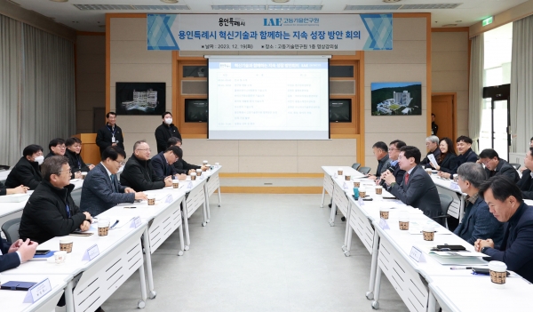 19일 ‘용인특례시 혁신기술과 함께하는 지속 성장 방안’을 주제로 열린 회의에는 이상일 시장과 김진균 고등기술연구원장을 비롯해 양 기관 관계자들이 참석했다.
