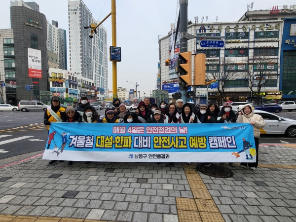 [금요저널] 인천시 남동구는 최근 모래내시장과 모래마을사거리 일원에서 남동구 안전총괄과, 안전보안관 25명이 참여한 가운데 12월 안전 점검의 날 캠페인을 실시했다고 20일 밝혔다.