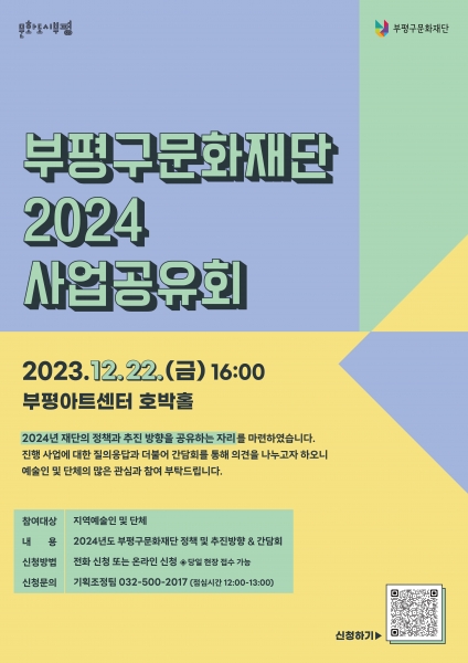 부평구 문화재단, 2024년 사업공유회 참여자 모집