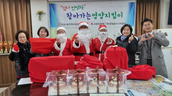 해당 행사는 관내 10세 미만의 아동을 양육하고 있는 취약계층을 대상으로 진행됐으며 안성3동지역사회보장협의체 위원뿐만아니라 안성시의회 정천식의원과 이관실의원이 함께 싼타클로스 분장을 하고 아이들 가정에 일일이 방문해 선물과 케이크를 전달했다.