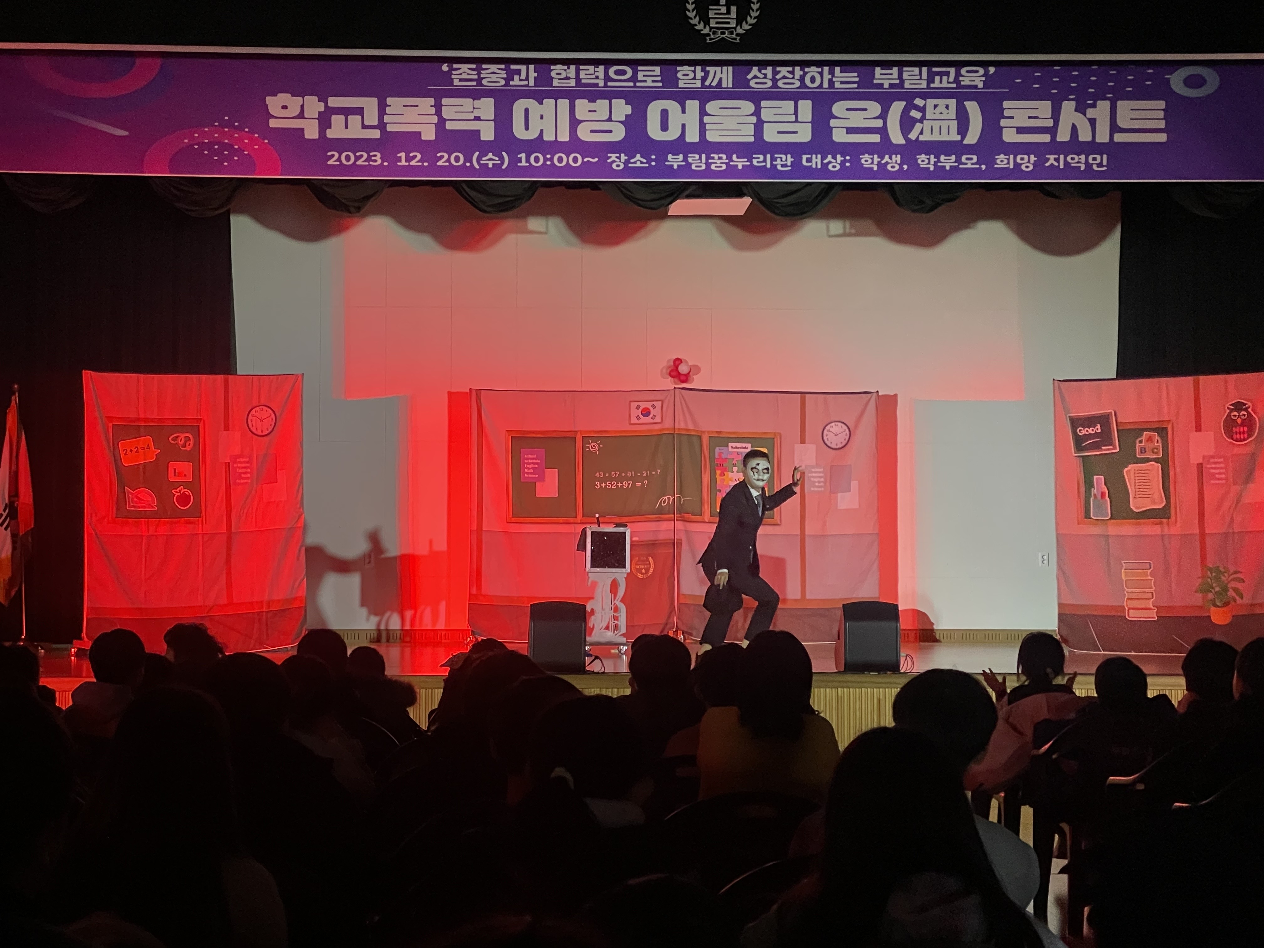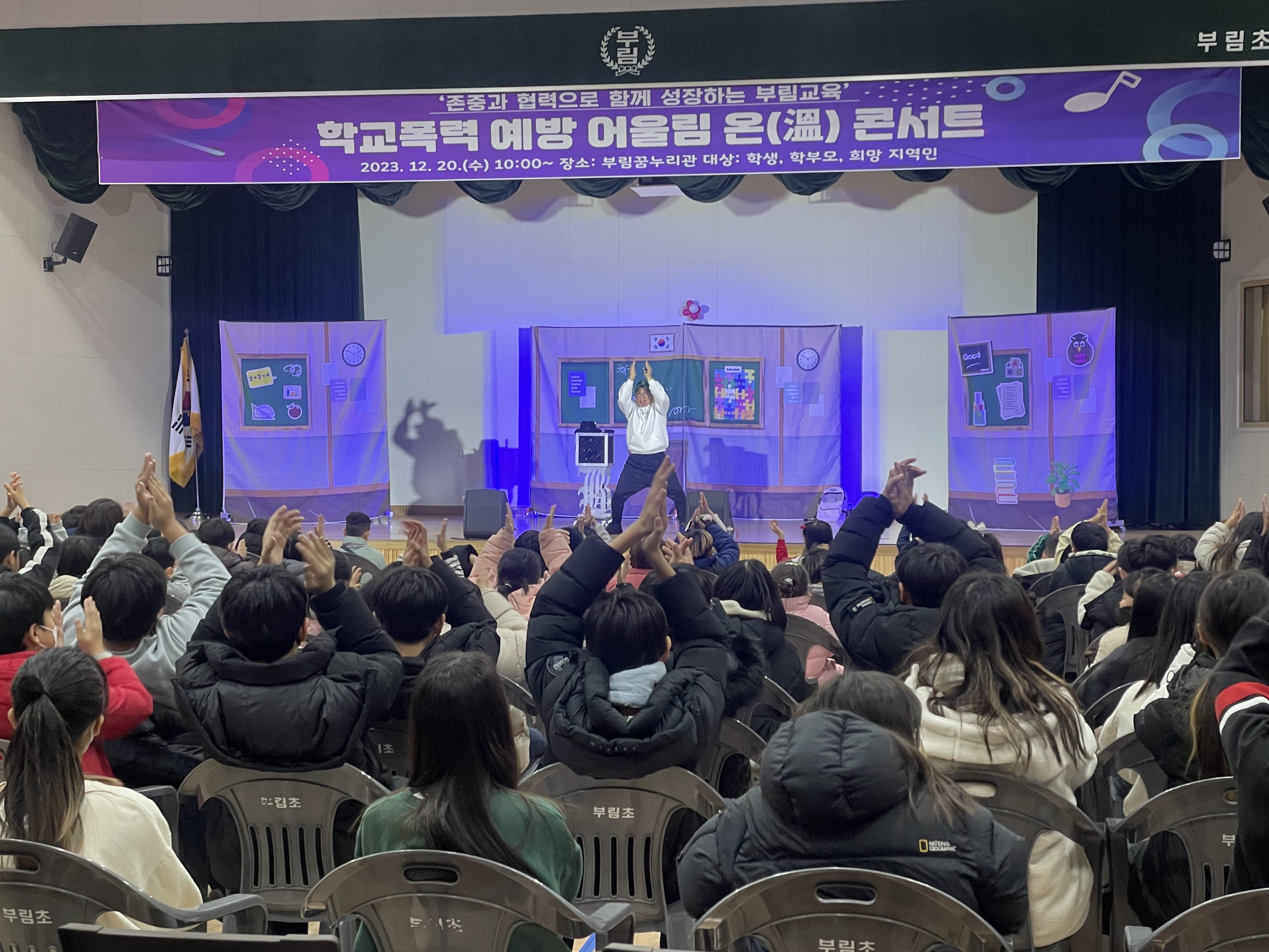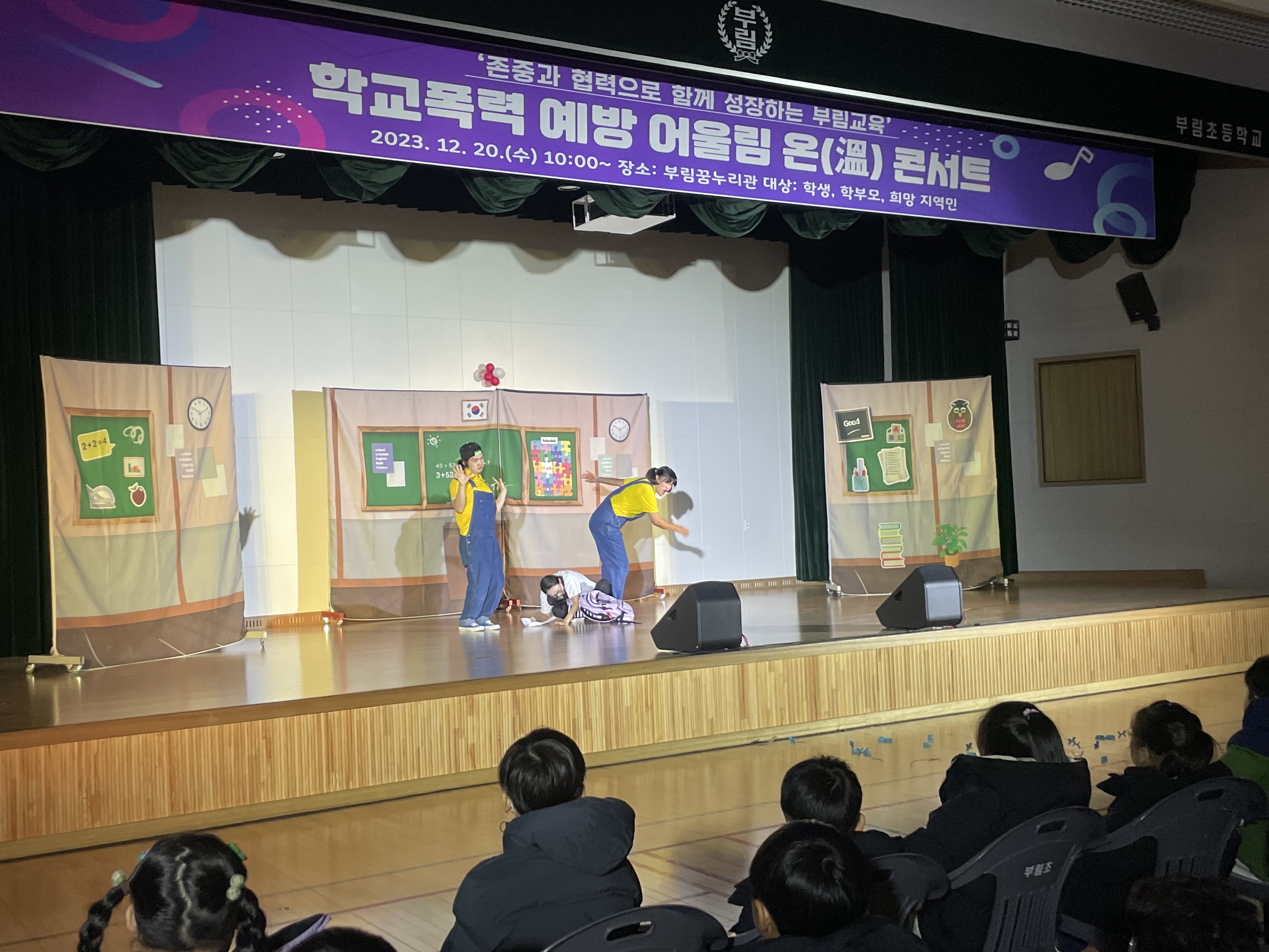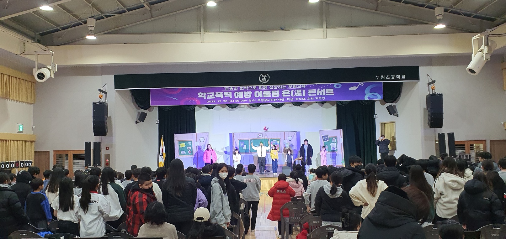 □ 부림초등학교(교장 박진서)는 12월 20일(수) 10시부터 11시 30분까지 본교 강당인 부림 꿈누리관에서 병설유치원을 비롯하여 전학년과 학부모, 지역민과 함께하는 “폭력 없는 행복학교 만들기- 어울림 온 콘서트” 행사를 열었다.