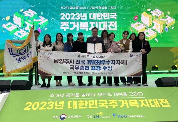 시상식은 지난 19일 서울 서초구 aT센터에서 열린 ‘2023년 대한민국 주거복지대전’ 중 진행됐으며 남양주시는 전문가 성과 평가와 발표를 거쳐 최고득점을 받아 최우수 지자체로 선정됐다.