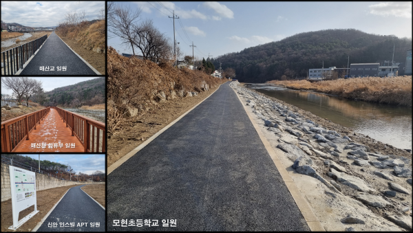 시 관계자는 “주민들에게 물길을 따라 여유롭게 산책할 수 있도록 수변공간을 활용한 산책로를 조성했고 벌써 많은 시민에게 큰 호응을 얻고 있다”며 “산책로 조성을 손꼽아 기다렸던 주민들이 새 산책로를 편리하게 이용할 수 있도록 지속적으로 점검을 하며 관리하겠다”고 말했다.