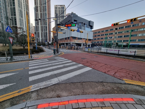 구는 보행자 안전 확보 및 안전 개선을 하기 위해 지난 2023년부터 이 사업을 시작해 총 6곳에 LED 바닥형 보행신호등을 설치했다.