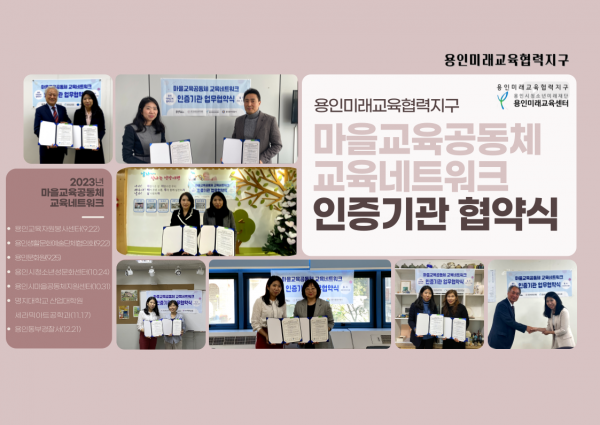 용인미래교육센터는 앞서 9월 22일부터 용인교육자원봉사센터, 용인생활문화예술단체협의회, 용인문화원, 용인시청소년성문화센터, 용인시마을공동체지원센터, 명지대학교 산업대학원 세라믹아트공학과와 교육 네트워크 업무협약을 맺었다.