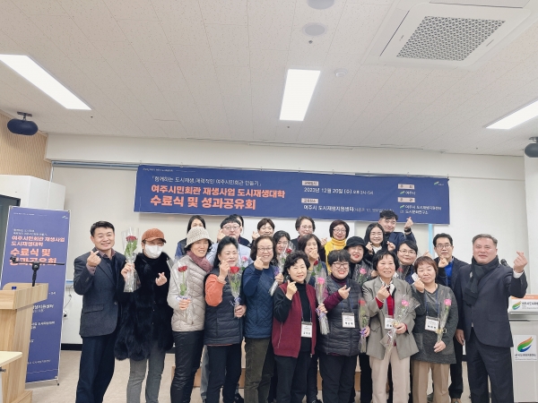 [금요저널] 여주시는 12월 20일 여주시 도시재생지원센터에서 ‘2023년 여주 시민회관 재생사업 도시재생대학’ 수료식 행사를 개최했다고 밝혔다.