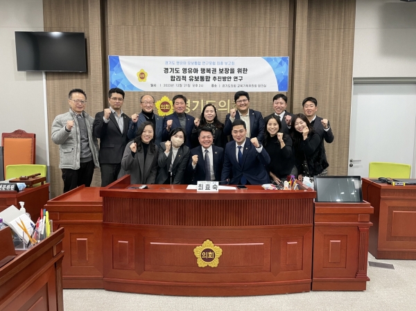 [금요저널] 경기도의회 교육기획위원회 최효숙 의원이 회장직을 맡고 있는 의원연구단체 ‘경기도 영유아 유보통합 연구포럼’은 12월 21일 교육기획위원회 회의실에서 ‘경기도 영유아 행복권 보장을 위한 합리적 유보통합 추진방안 연구’ 최종보고회를 개최했다.