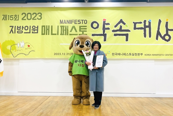 김찬심 시흥시의회 의원, 지방의원 매니페스토 약속대상 수상