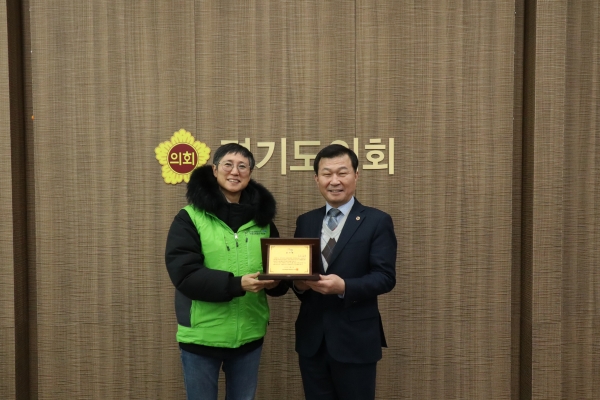 [금요저널] 경기도의회 교육행정위원회 한원찬 부위원장은 21일 경기도의회 교육행정위원회 회의실에서 전국교육공무직본부 경기지부로부터 감사패를 전달 받았다.