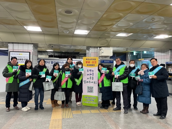 [금요저널] 의정부시 호원1동주민센터는 12월 21일 호원1동 지역사회보장협의체와 함께 망월사역을 이용하는 시민들을 대상으로 복지 사각지대 발굴 홍보 캠페인을 실시했다.