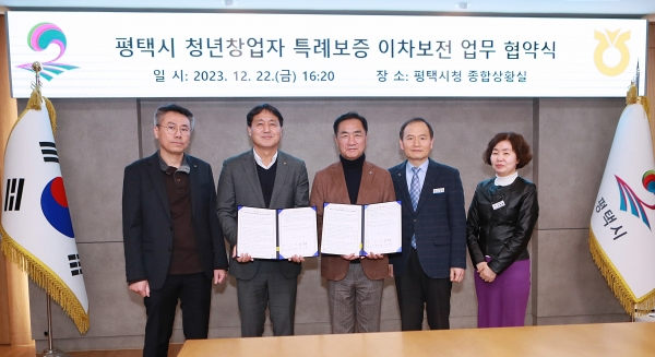 [금요저널] 평택시는 지난 22일 시청 종합상황실에서 NH농협은행 평택시지부와 청년 창업자의 대출이자 부담을 줄이기 위해 ‘평택시 청년창업자 특례보증 이차보전 지원사업’ 협약을 체결했다.
