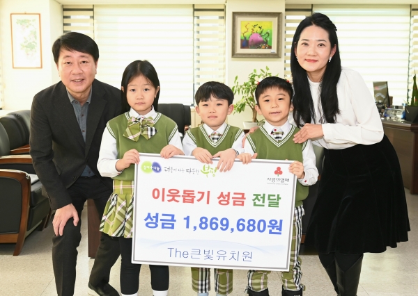 [금요저널] 부평구는 지난 22일 The큰빛유치원 원생들로부터 이웃돕기 성금 1869만680원을 전달 받았다.