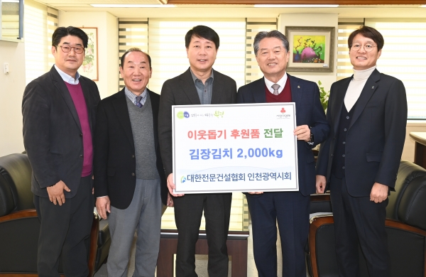 전달식에 참석한 대한전문건설협회 인천광역시회 지문철 회장은 “협회 회원사들의 참여로 이뤄진 김장김치 나눔이 동장군도 이겨내고 지역사회의 어려운 이웃들에게 전달되어 따뜻한 겨울을 보냈으며 좋겠다”고 전했다.